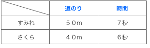 さくら 40÷6=6.66… 1秒間あたりに走る道のりが,長いほど速いから,すみれさんが速い。