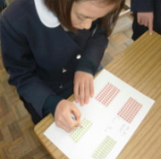 方法や意味が分からない場合は,具体的に10個の場合を考えさせ,袋に詰める操作をやってみる。その後,自分で袋に入れる数を変えて,袋に詰める活動をしながら見つけていくようにする。 |