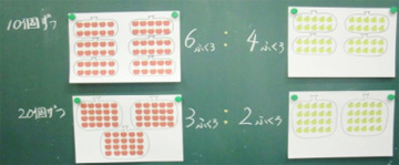 割合の表し方の一つとしての比を,袋詰めの活動を基にして,具体的に知らせる。 |