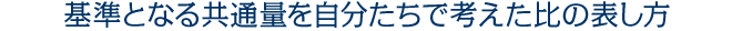 いろいろな基準量を決め,二つの数量の割合の新しい表し方(比)について考えることができる。