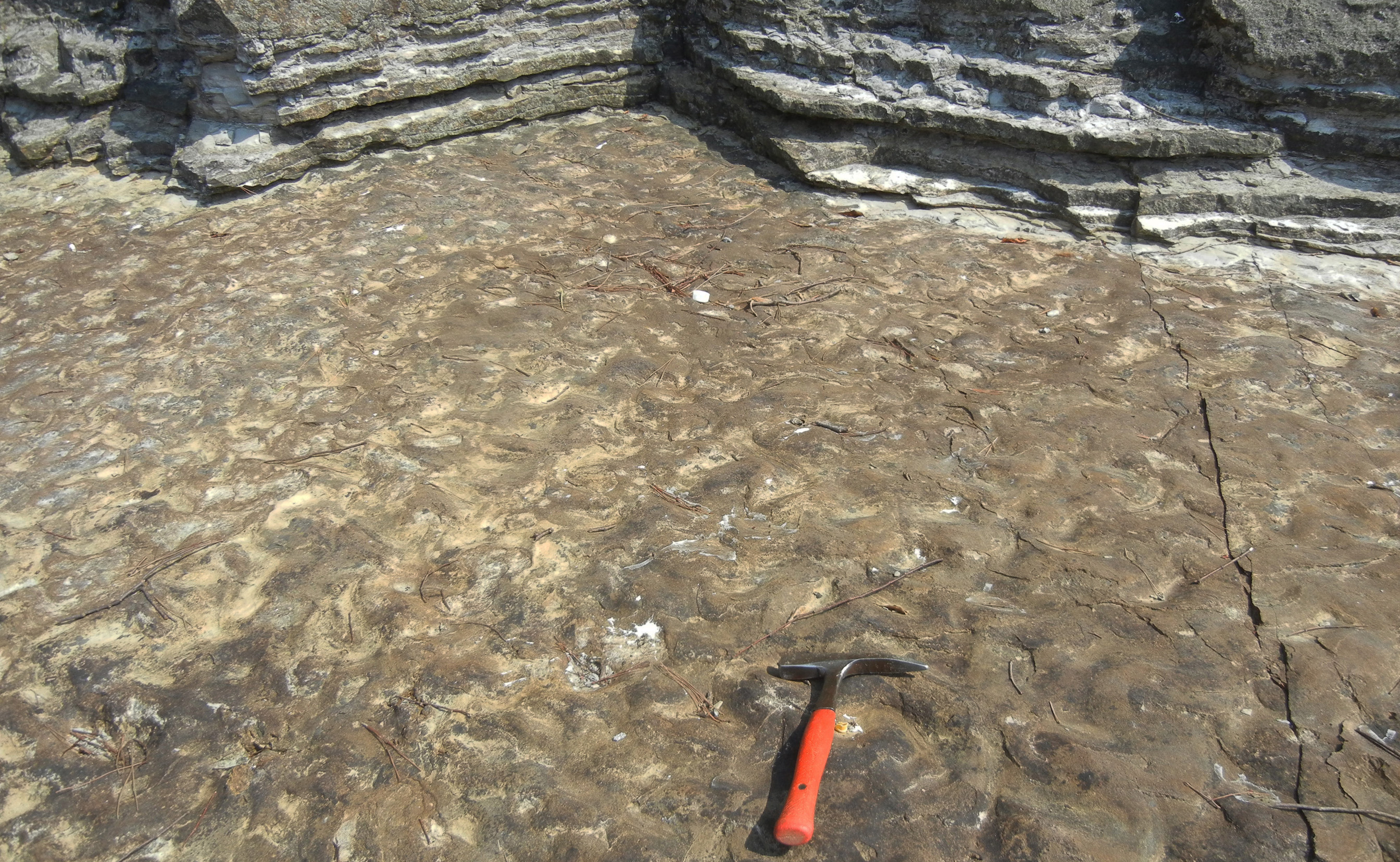 地層面がでこぼこしているが,これは波によってできた
