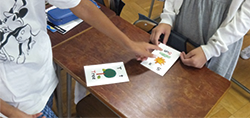 - 積極的にアルファベットの大文字を読んだり,欲しいものを尋ねたり答えたりしようとする。