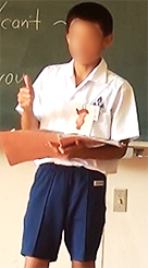 友だちのジェスチャーを見て,同じように動作を伴ってcanとcan'tを伝えようとした。