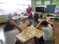 3~4人のグループになり行う。お手つきは1回休み,とったカードは手元に裏返しで置く等いくつかの約束事を決めておく。ゲームの最後には一番多くカードをとった児童を賞賛した。