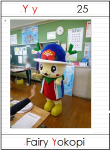 ゲームが好きな児童にとって特にカルタは人気が高い。自分達の町である横芝光町にあるものをABC順に26ヶ所を選び作成した。 活動の始めでは,作成した26枚を紹介し英語での言い方を確認した。慣れ親しませるためにポインティングゲームやフライスワッターゲームやスリーヒントクイズなどを行った。こうした活動を十分に行い,横芝光町カルタを行った。