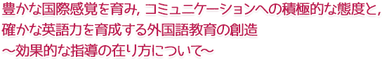 コミュニケーションは,場面や相手,目的に応じて,その在り方が変わる。小学校高学年から中学生になるに従い,知的好奇心の高まりとともに,活動に意味を求める傾向がある。そこで,「どんな場面で,誰に対して,何のためにこの表現を使うのか」等,指導者は,一つ一つの活動についてその「必然性」を十分に吟味し,意味のあるコミュニケーション場面を設定するよう心がける。言語教育としての立場をしっかりと踏まえ,相手意識・目的意識のある場面設定を大切にし,その中で必然性のある活動や学習を組み立てていく。こうした授業設計が,児童の心を動かす授業づくりにつながると考える。