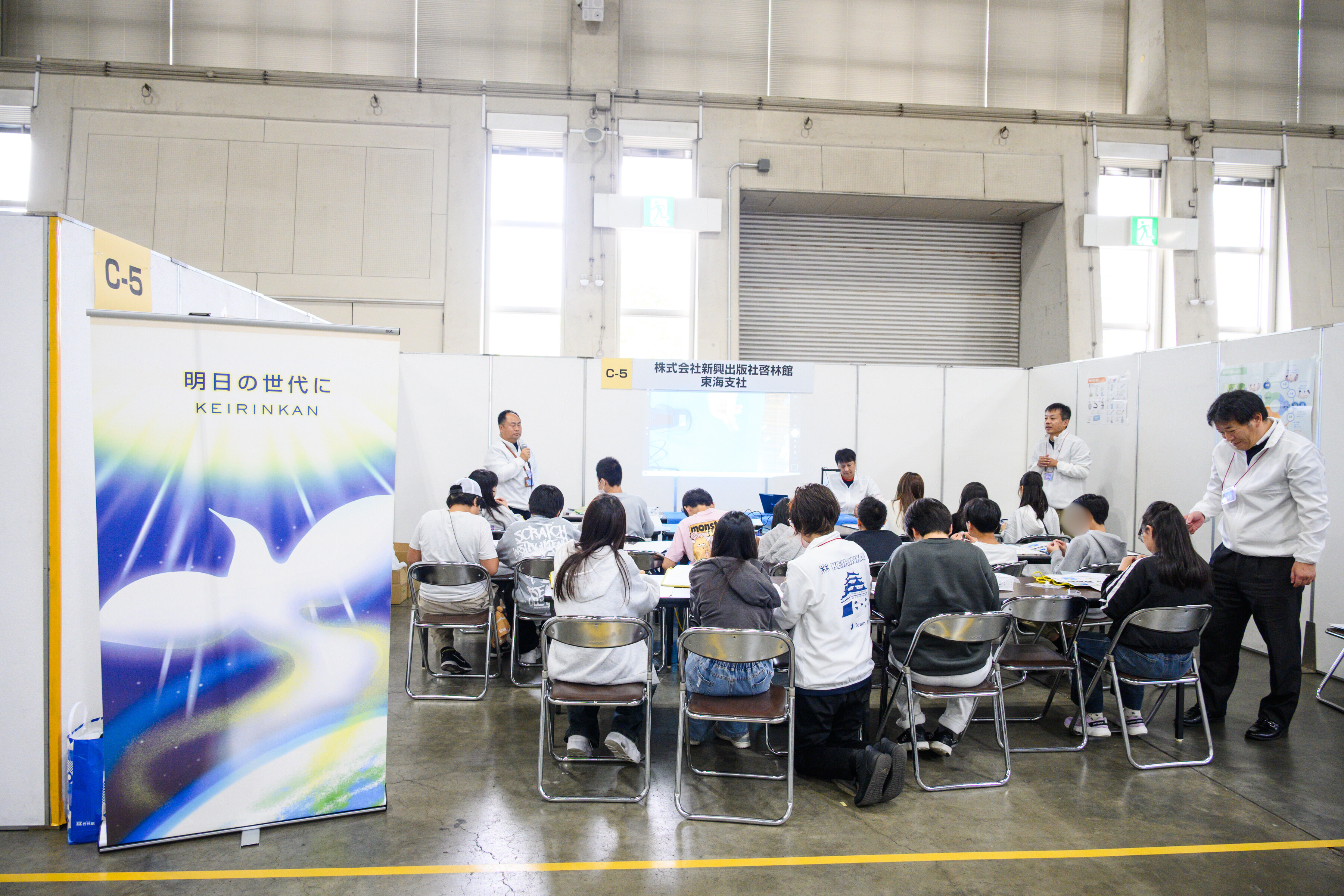 「理系好き集まれ!! ~算数理科って不思議で面白い~」と題して、当社の仕事が主に「本を作る人(編集)」「本を形にする人(印刷・製本)」「本を伝える人」で構成されていることを教科書・学習参考書・児童図書を例に挙げて説明を行いました。