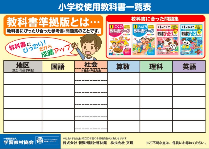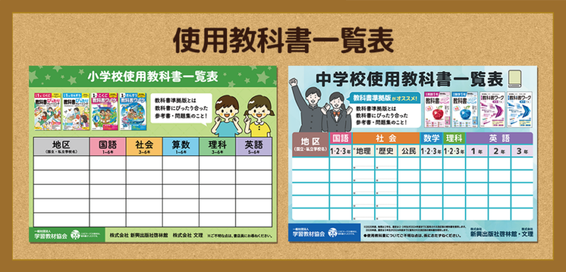 【小学・中学】「使用教科書一覧表」プリントアウト用データ