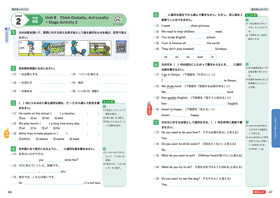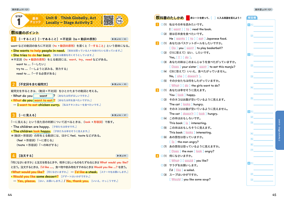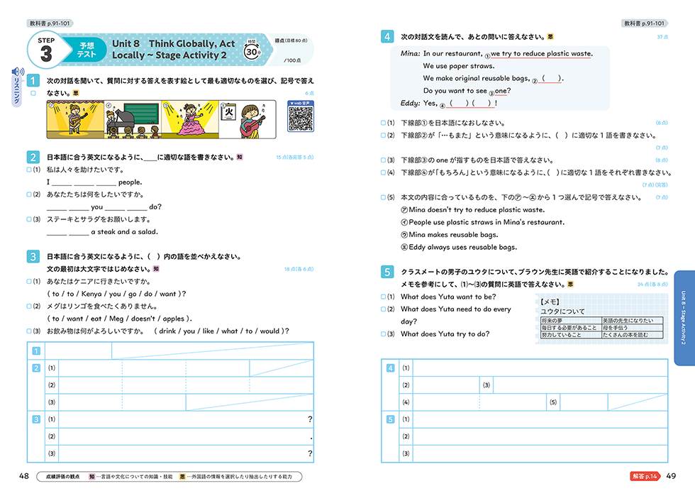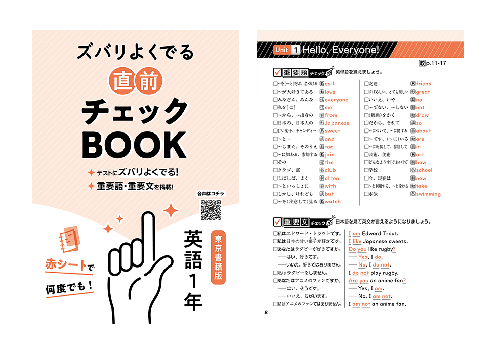 定期テスト ズバリよくでる 英語1年 東京書籍版の紙面の一部を掲載いたします。