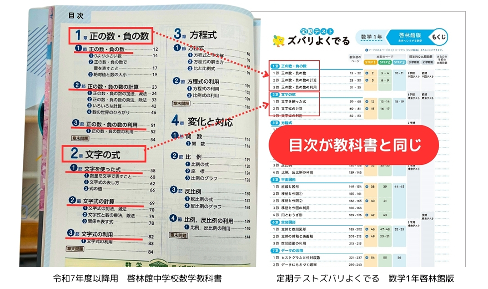 教科書が改訂されると、もくじ(学習順)や用語が変更になったりすることがあります。