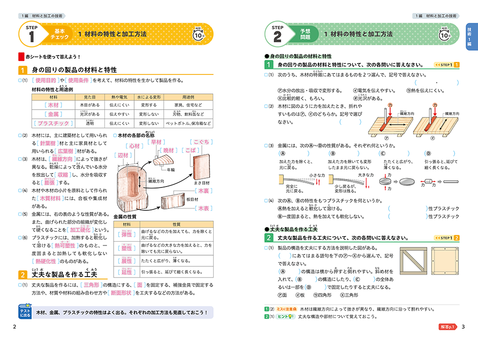 定期テスト ズバリよくでる 技術・家庭 全教科書版の紙面の一部を掲載いたします。
