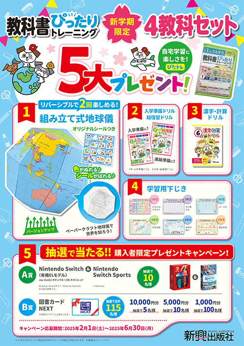 2025年1月下旬より順次、小学生用の『小学教科書ぴったりトレーニング』の4教科セット(定価 5,984円(税込))を全国の書店で発売いたします。