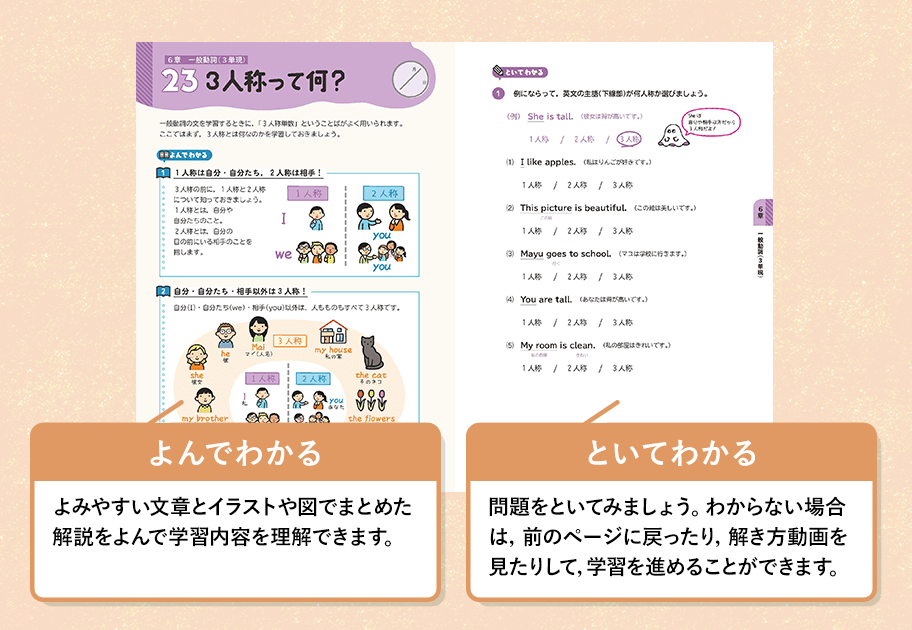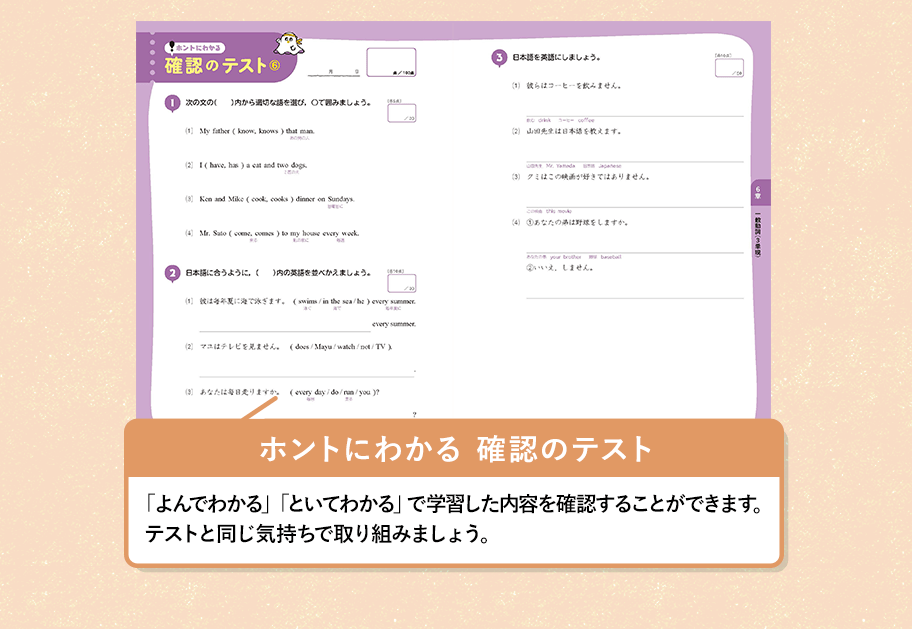 本書に掲載している文章については,UDフォントで大きいサイズの文字を使用し,行間隔を広く取ることで,よみやすくしています。また,イラストや図,おばけのキャラクターの吹き出しなどで,無理なく学習内容を理解することができます。