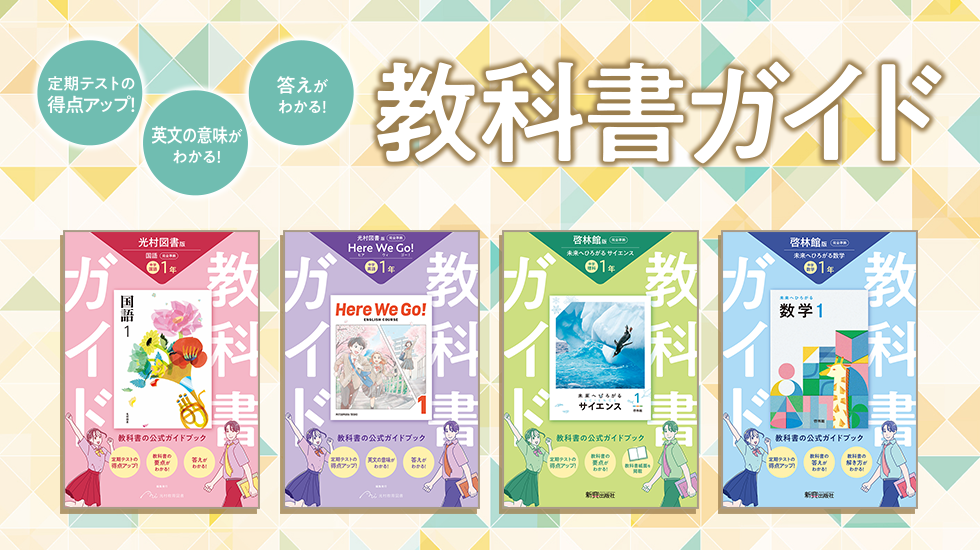 教科書が改訂されると、教科書の内容はもちろん、問題や用語が変更になったりすることがあります。教科書に完全対応した「教科書ガイド」なら、予習・復習・テスト対策を安心して行うことができます。