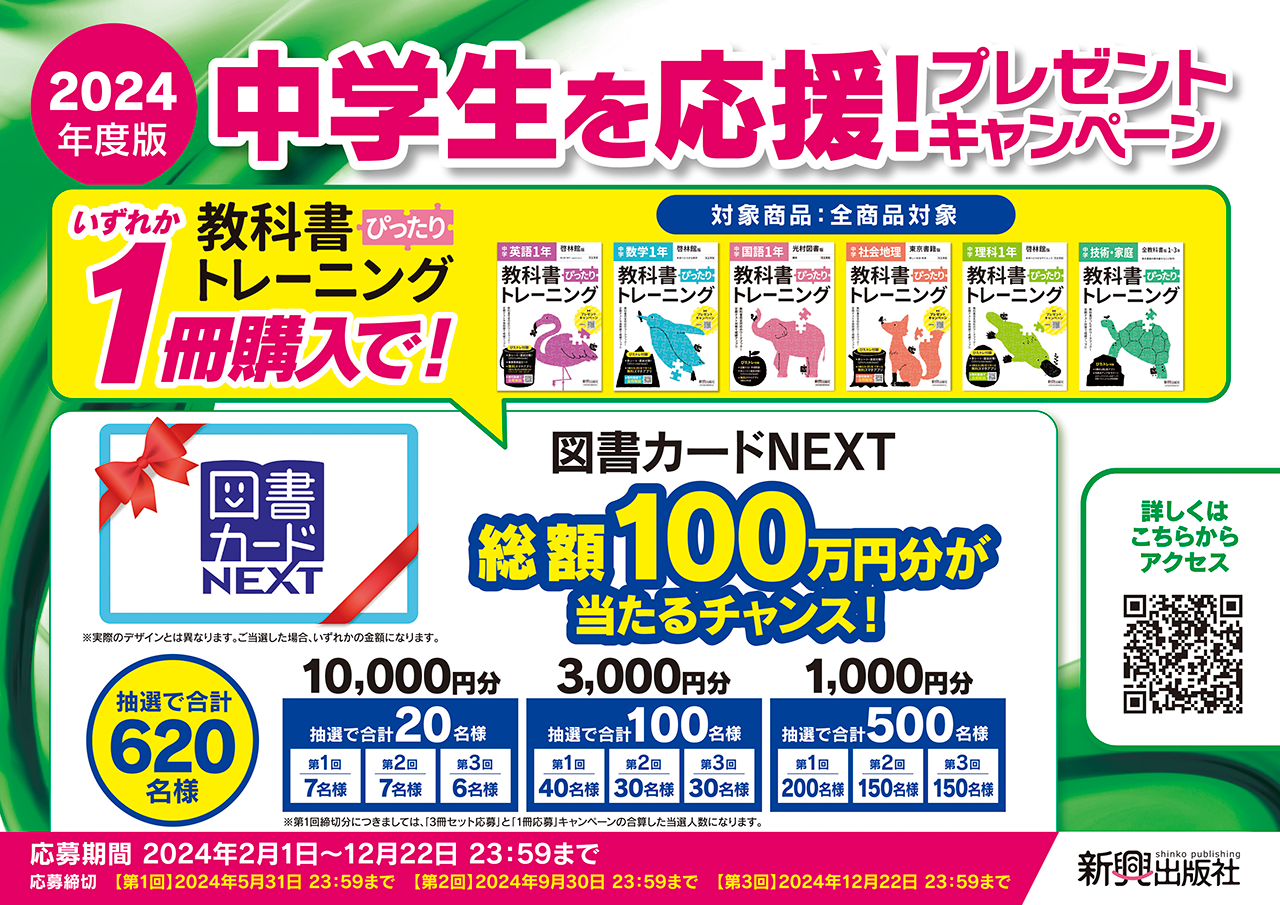 応募条件:中学教科書ぴったりトレーニングを購入する。(1冊から応募できます!)