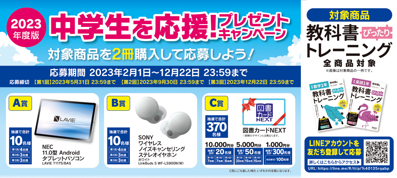 中学生を応援!プレゼントキャンペーン|教科書ぴったりトレーニング