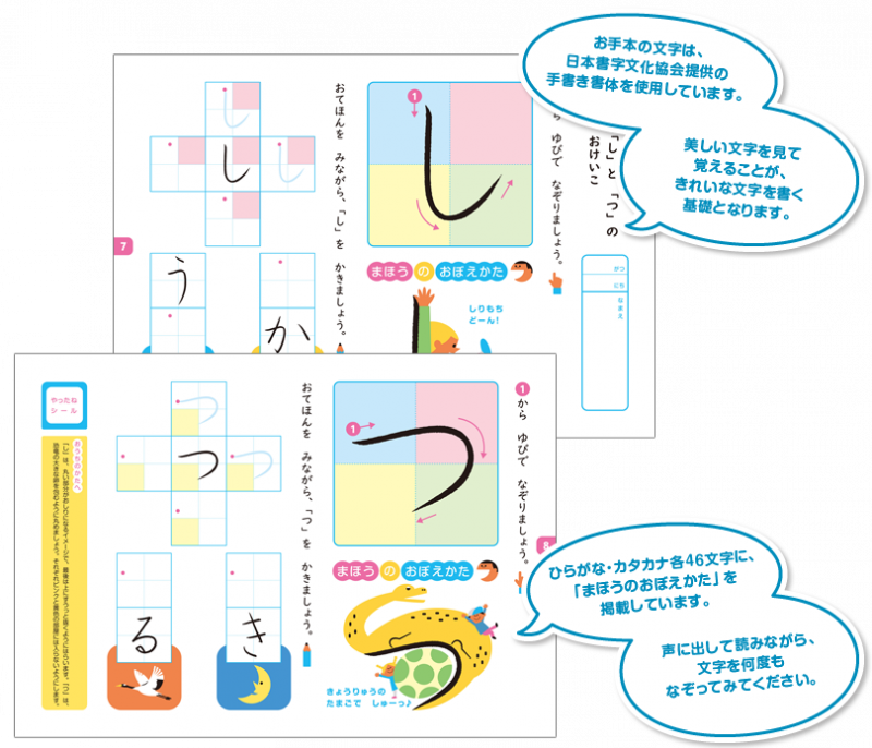 さらに、すこしだけ「できる子」になるための要素をプラスしました。たとえば「ひらがな」には、「きれいな手書き文字のお手本」をプラスして、「ひらがながきれいに書ける」商品にしております。