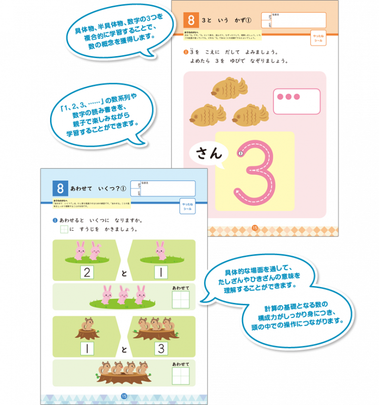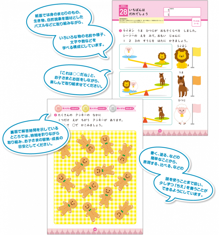 『おうちレッスン』シリーズは、幼児教育のプロの監修のもと、小学校入学前に必要な資質・能力が身につく構成としました。