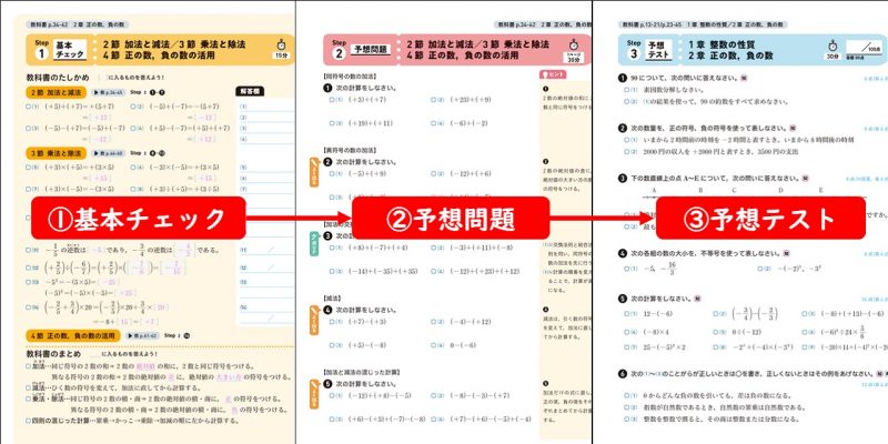【ステップ2】「予想問題」…定期テストレベルの問題を解き、実戦力を身に付ける。