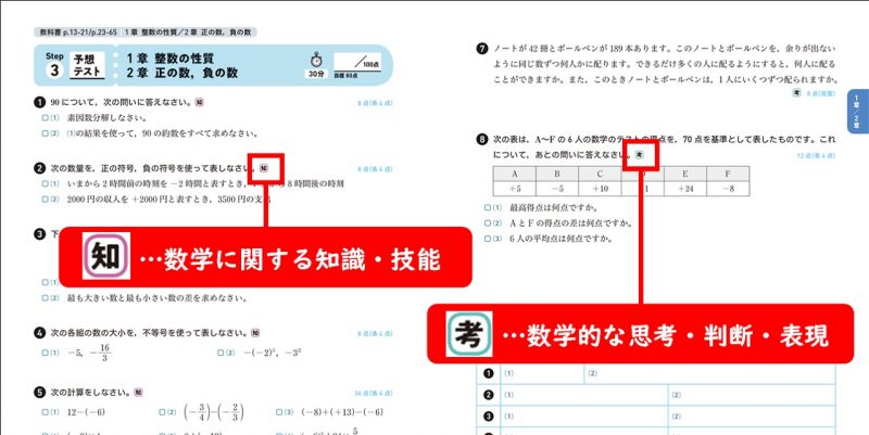 一般の問題集では、知識や暗記力を問う問題が多くなりますが、『ズバリよくでる』の「予想テスト」では、観点別学習状況の評価に基づいた問題を採用していますので、学校の評価方法に合った学習をすることができ、成績アップにつながります。