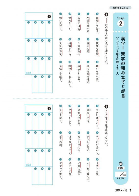 ・多くの定期テストは「漢字」「読解」「作文」で構成されている。