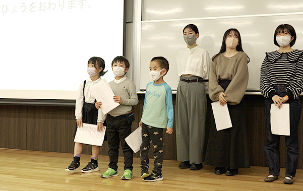 発表会の閉会セレモニーでは、小学校を卒業する3名の研究員へ修了証書と記念品が授与され会場は温かい拍手に包まれました。