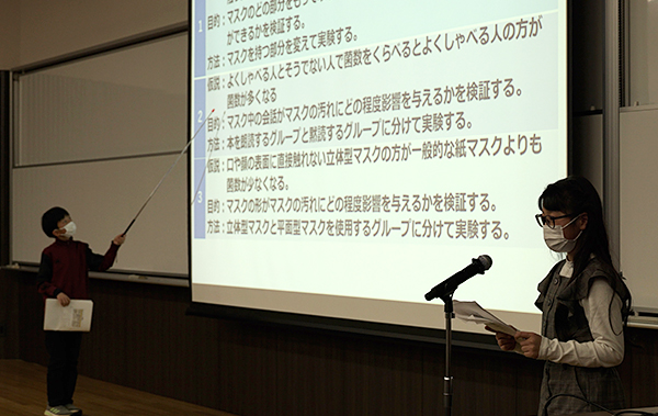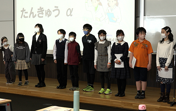 当日は、来賓の教育関係者や多くの保護者が見守るなか、所属する講座ごとの小学生研究員たちが、パワーポイントなどのプレゼンツールを活用し、「自身で見つけた課題をどのように探究したのか」を披露しました。