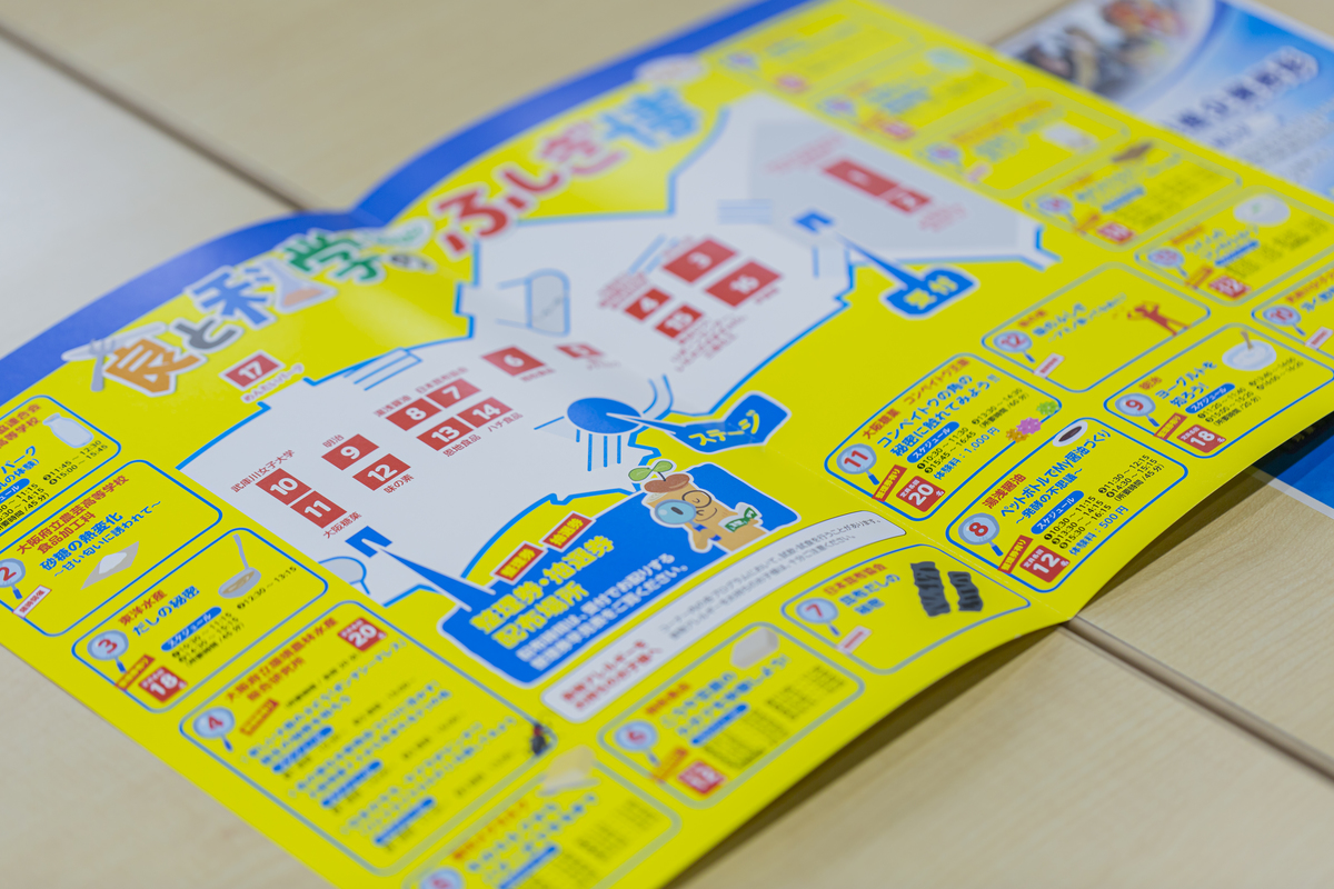 子どもたちに一番身近なテーマ「食」の中には科学がたくさん隠れていて、それを企業さんに伝えてもらえれば本当におもしろいことができるんじゃないかということで、2018年に「食と科学のふしぎ博」というイベントへと発展させました。「昆布だしの秘密」、「ヨーグルトを知ろう」、「水溶液としてお茶を見てみよう」など、いろいろな食品メーカーさんに協力いただき、理科的要素を盛り込んだ内容をわかりやすく、そして楽しく、子どもたちに教えていただきました。また、特に地元大阪の企業さんとのこうした触れ合いを通して、身近にこんなすごい企業があるんだということを子どもたちに知ってもらって、自分たちの暮らす街をもっと好きになってくれたらいいなと思うのです。講師をしていただいた企業の方々からも、普段なかなか自分たちの商品づくりを子どもたちに直接伝えられる機会がないということで、嬉しい交流になったと好評でした。
