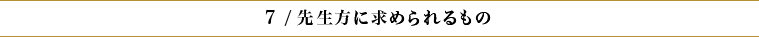 私の周りにも、小学校や中学校での素晴らしい先生との出会いで、自分の将来を決めた人がたくさんいる。しかし子どもは通常先生を選ぶことができない。先生はそれだけの大きな影響力と使命をもっている。子どもは誰もがさまざまな可能性を秘めており、いろいろなきっかけで自分の将来の方向を決めていく。
